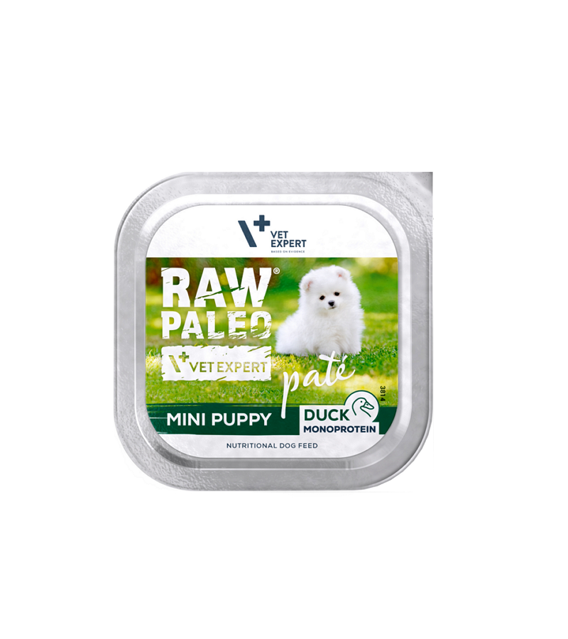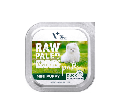 Raw Paleo PATÉ MINI PUPPY DUCK je kompletné krmivo vo forme jemnej paštéty určenej pre zdravo rastúce psy malých plemien od odstavenia do plnej dospelosti (pribl. do 1 roku). Zloženie obsahuje prírodné prebiotikum – inulín. Čítať viac